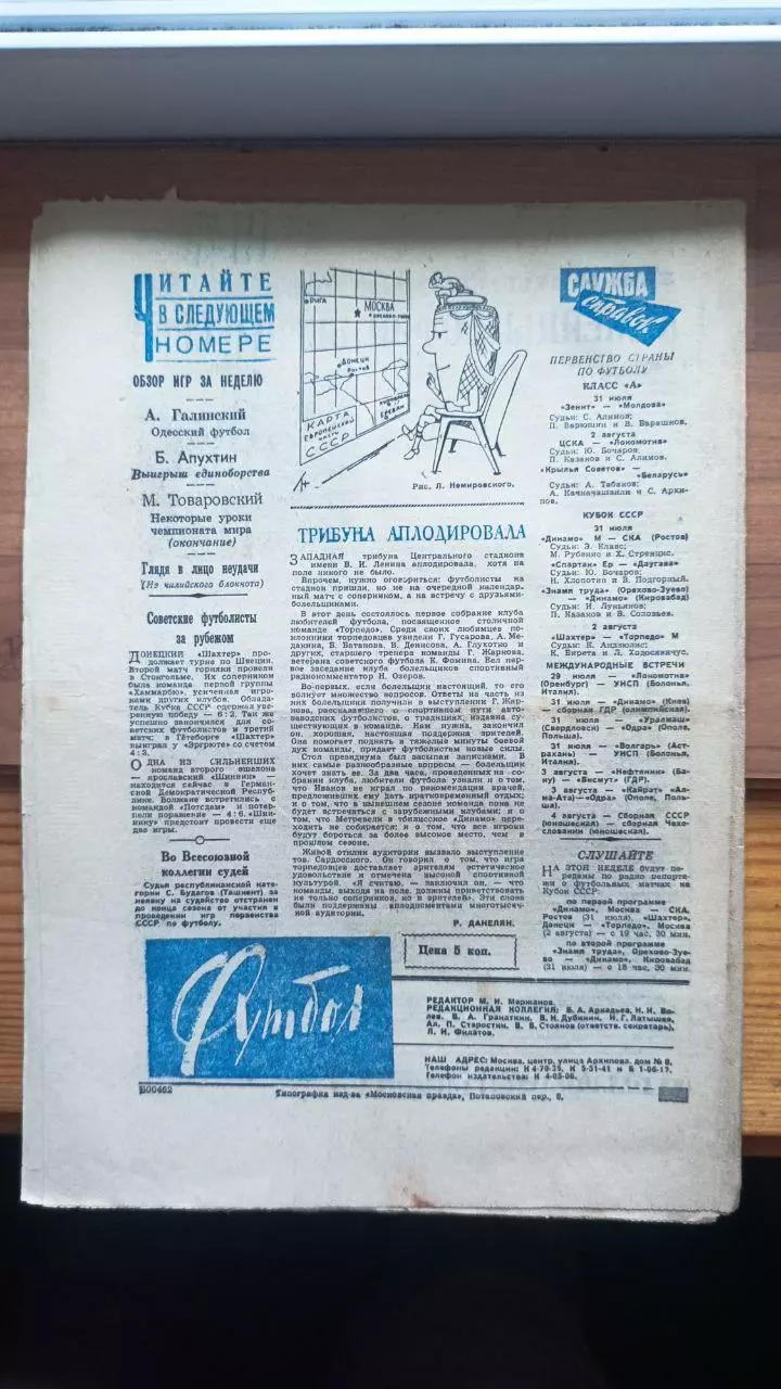 Газета Футбол (СССР) №30 (114) 1962 год