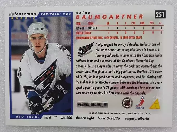 карточка хоккей НХЛ Нолан Баумгартнер Вашингтон Кэпиталз № 251, выпуск 1996-97 Score Hockey, состояние на фото