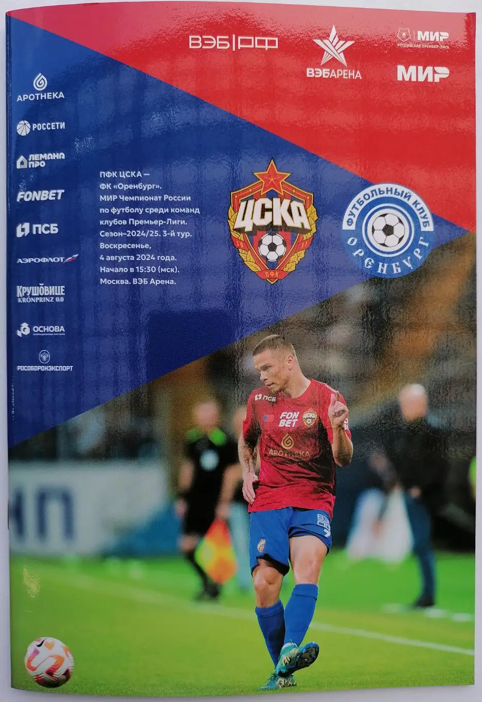 Официальная программа матча Чемпионата России по футболу сезона 2024/2025 года ЦСКА Москва - ФК Оренбург. 4 августа 2024 года. Отличное состояние. Оплата на Карту Сбербанка .