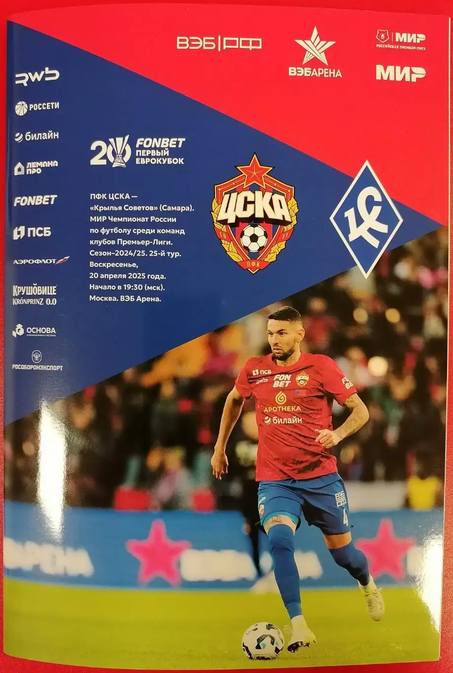 ЦСКА Москва - КРЫЛЬЯ СОВЕТОВ Самара 20.04.2025 оф. программа