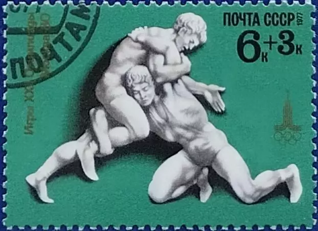 СССР 1977. Летние Олимпийские игры. Москва 1980. Вольная борьба. Гашеная.