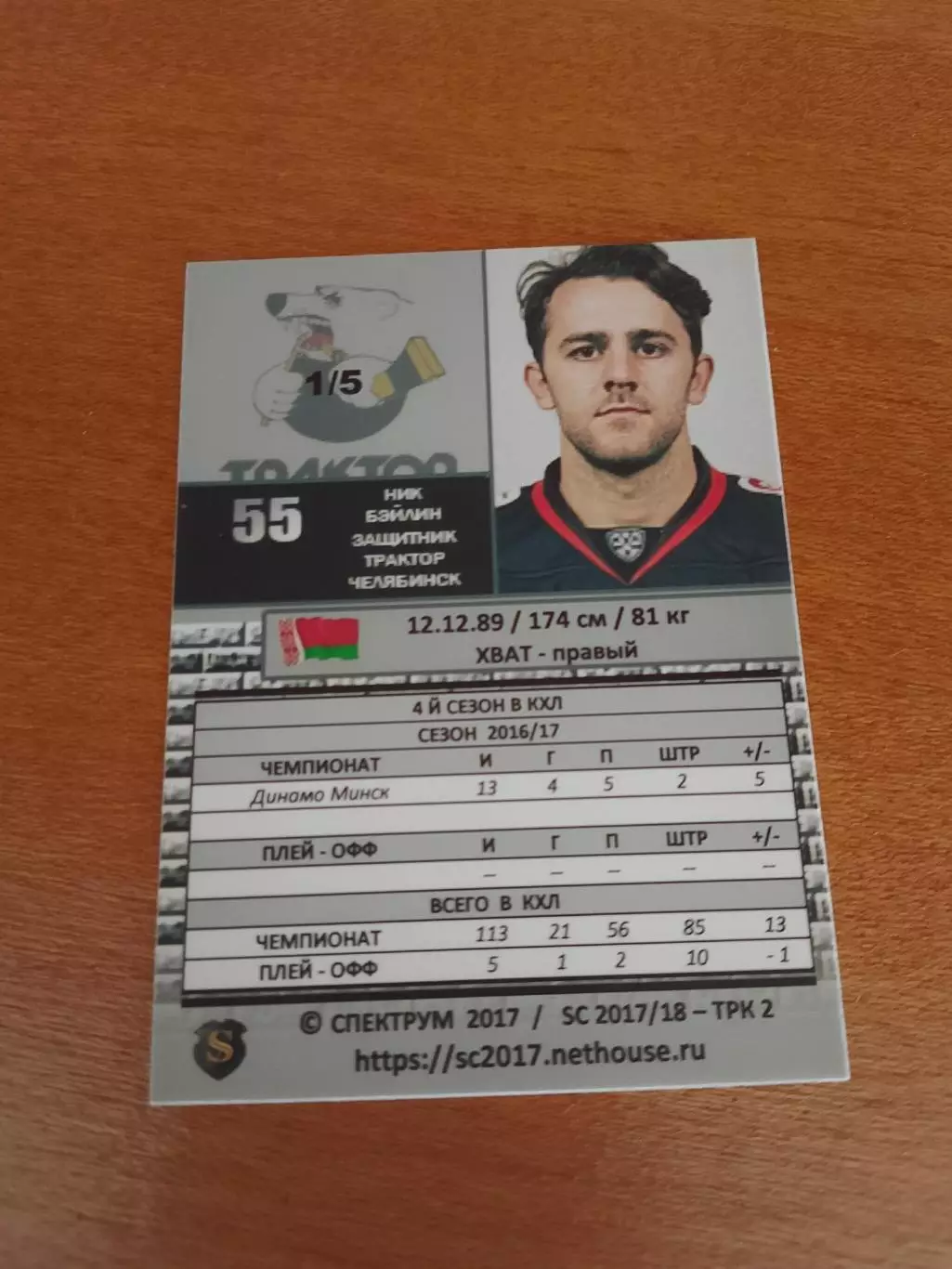 Автограф на тиражной карте Ник Бэйлен Динамо Минск