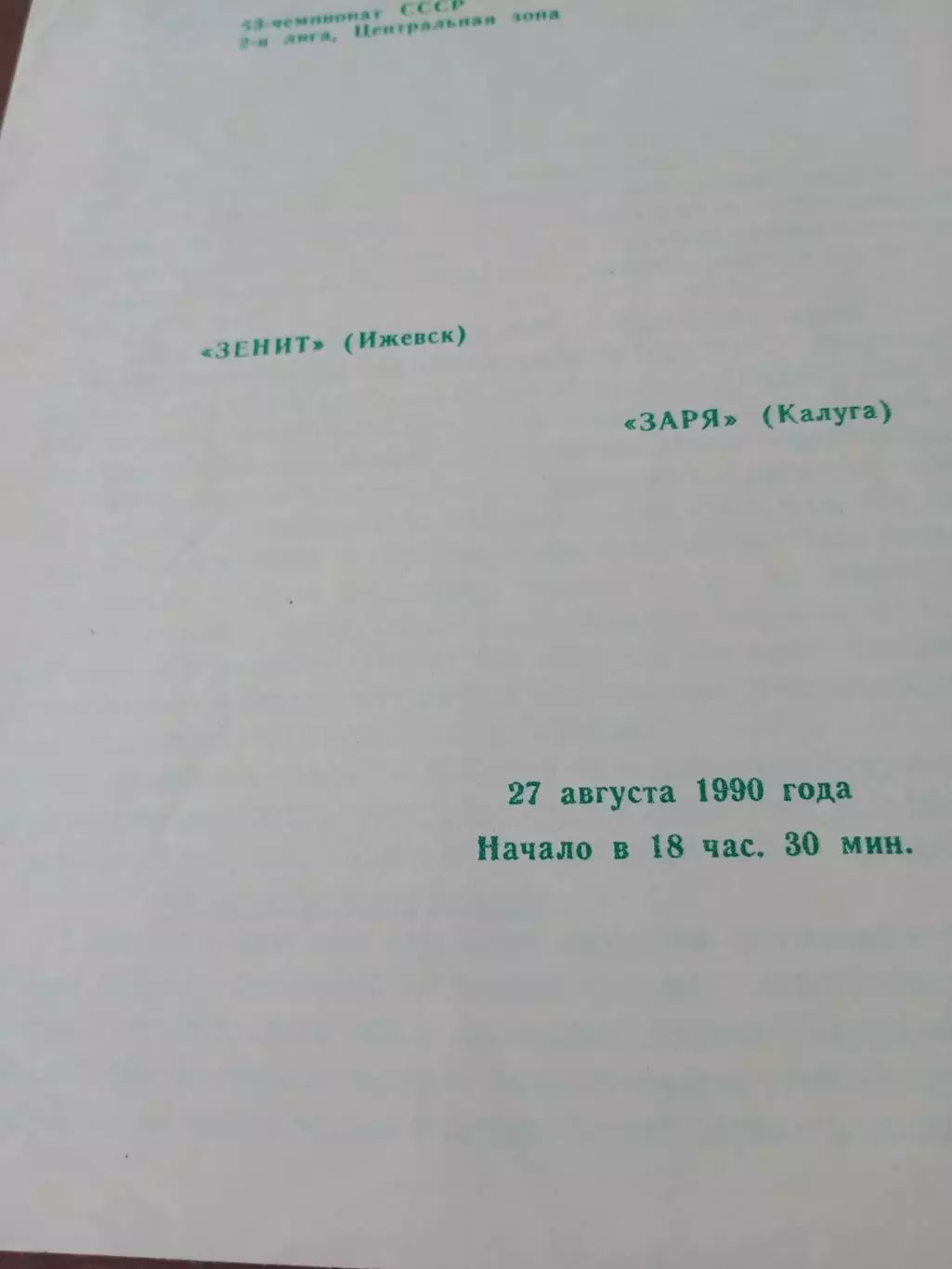 Зенит Ижевск - Заря Калуга. 27 августа 1990 год