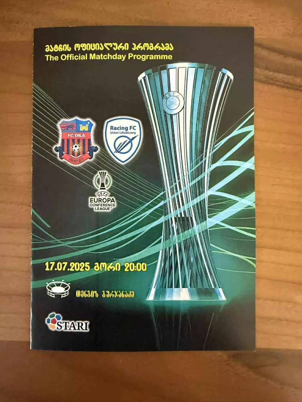 Официальная программа изданная футбольным клубом "ДИЛА" к домашнему матчу Лиги Конференций ЕВРОПЫ "ДИЛА" ГОРИ,ГРУЗИЯ - "РАСИНГ" ЛЮКСЕМБУРГ от 17.07.2025 года,стадион им.Тенгиза БУРДЖАНАДЗЕ,г.ГОРИ. Состояние - на скане. Все возможные вопросы - только до осуществления заказа.