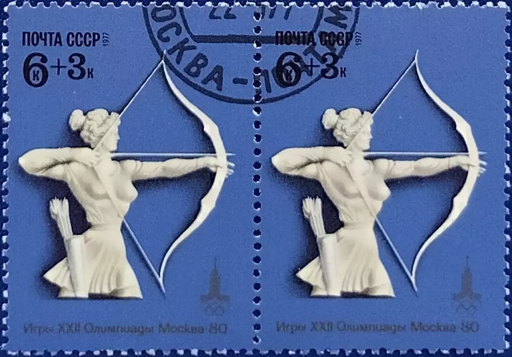 СССР 1977. Летние Олимп. игры. Москва 1980. Стрельба из лука. Гашеная. Пара 1.
