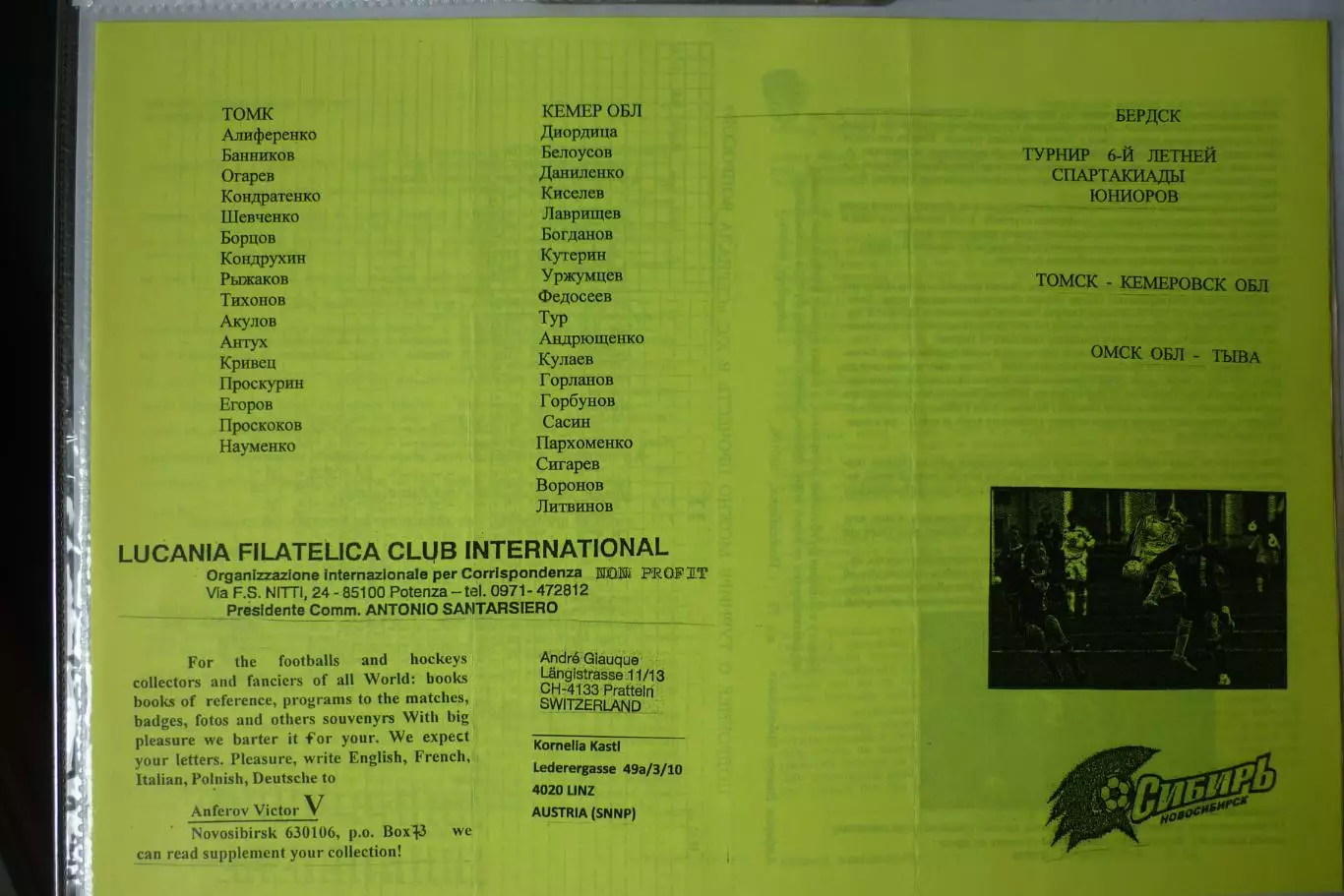 Томская-Кемеровская / Омская-Тыва(Бердск) - неофициальная программа матчей Летней Спартакиады юниоров