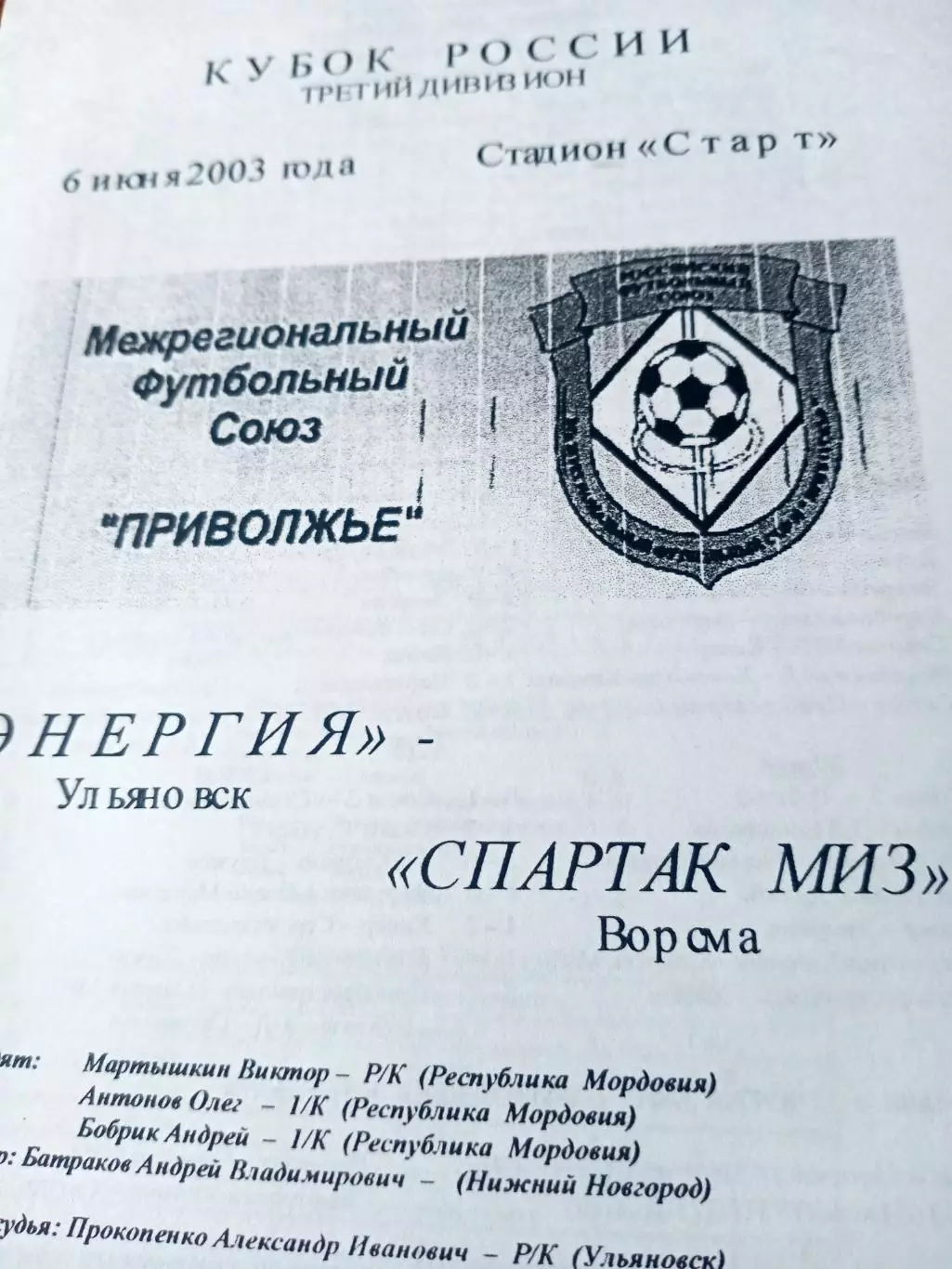 Кубок России. Энергия Ульяновск - Спартак МИЗ Ворсма. 6 июня 2003 год