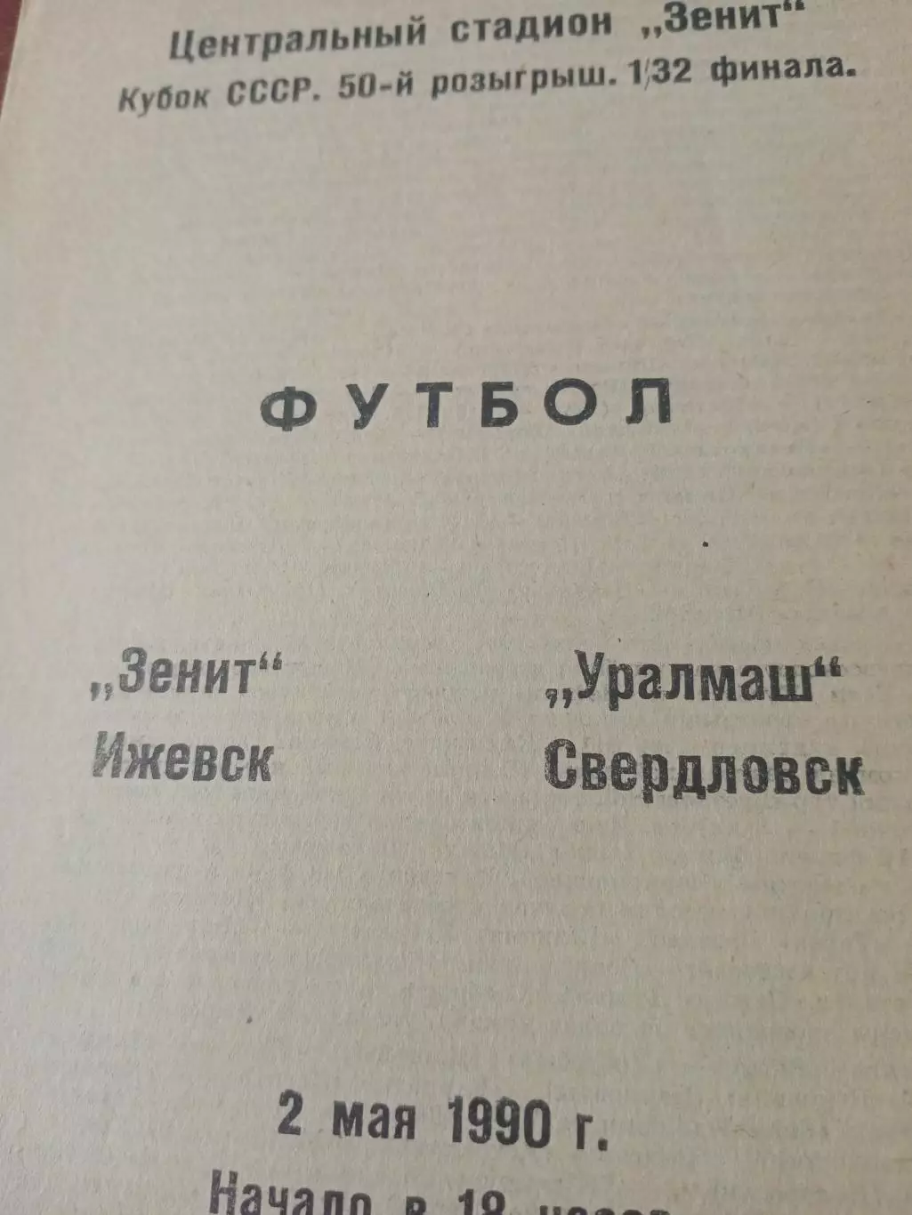 Кубок СССР. Зенит Ижевск - Уралмаш Свердловск. 2 мая 1990 год