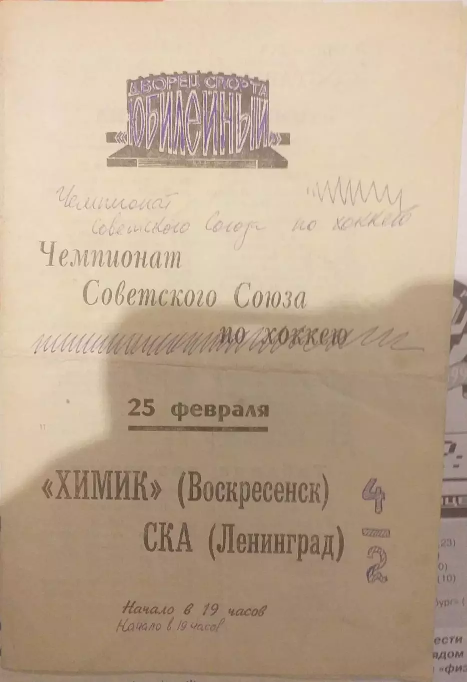 СКА Ленинград — Химик Воскресенск 25.02.1974. Официальная программа