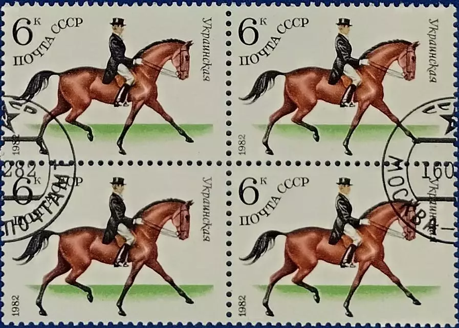 СССР 1982. Коневодство в СССР. Украинская. Гашеная. Квартблок.