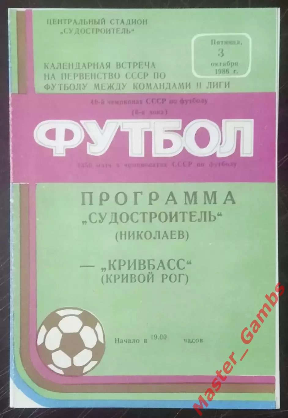 Судостроитель Николаев - Кривбасс Кривой Рог 1986"