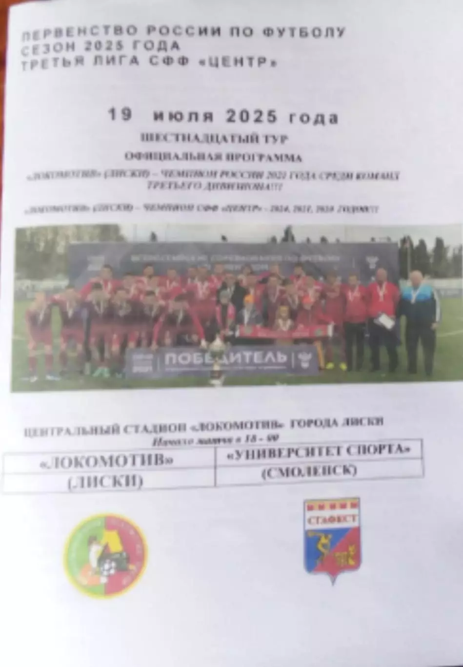 ЛОКОМОТИВ Лиски- УНИВЕРСИТЕТ СПОРТА Смоленск 19 июля 2025