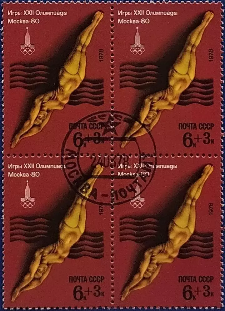 СССР 1978. Летние Олимпийские игры. Москва 1980. Прыжки в воду. Гашеная. Кварт.