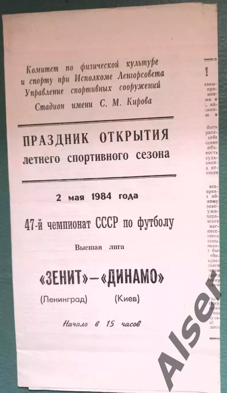 Зенит Ленинград-Динамо Киев 02.05.1984