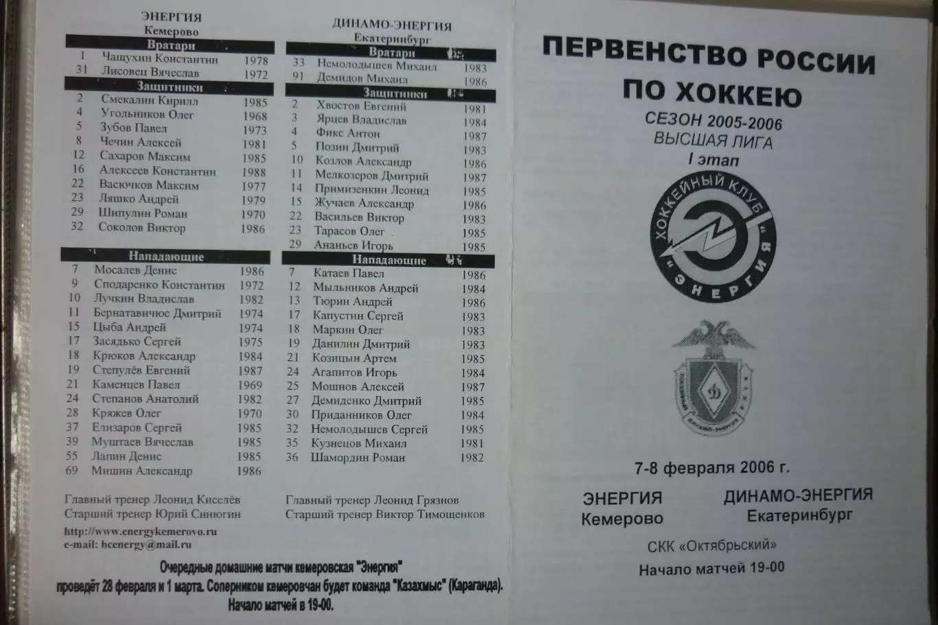 Энергия(Кемерово) - Динамо-Энергия(Екатеринбург) - 2005/06 - официальная программа