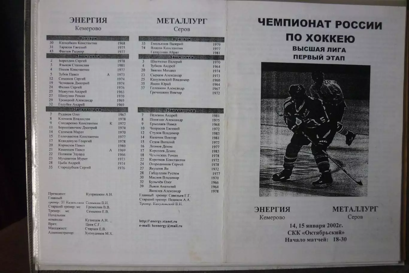 Энергия(Кемерово) - Металлург(Серов) - 2001/02 - официальная программа