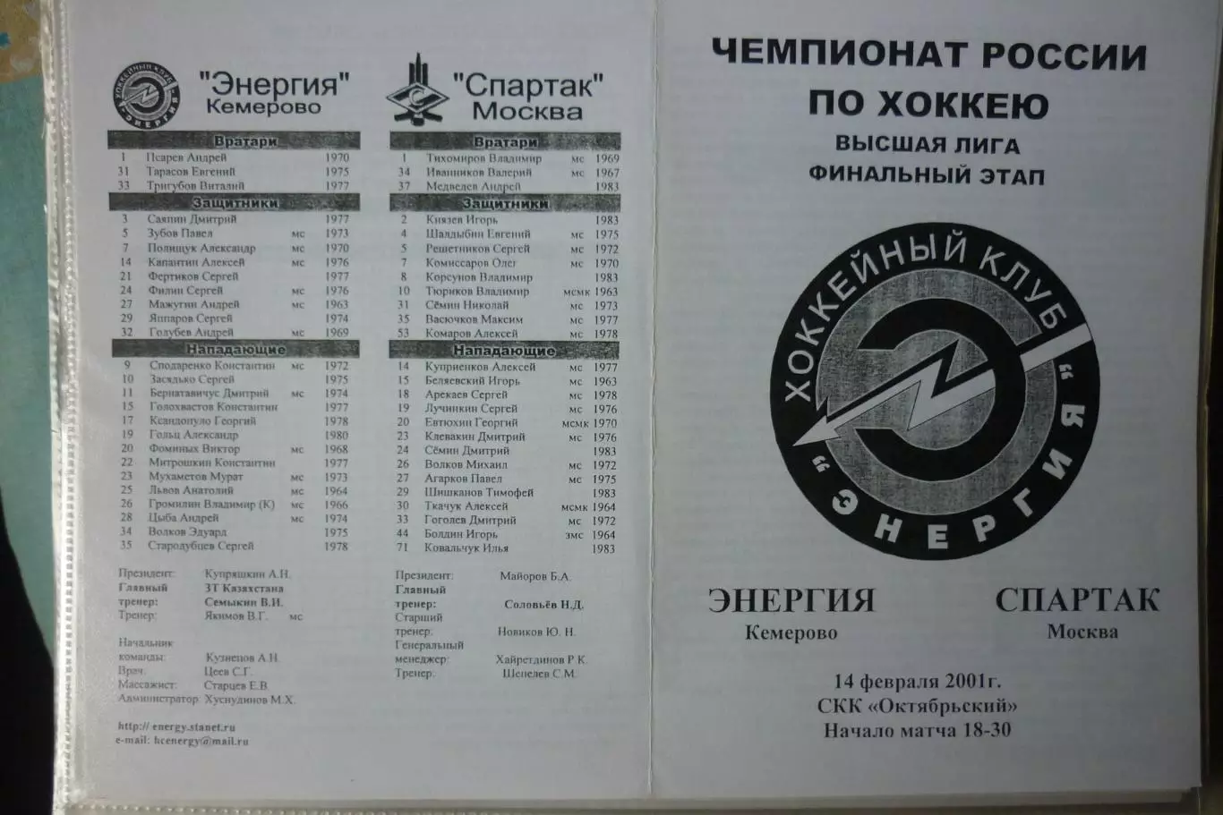 Энергия(Кемерово) - Спартак(Москва) - 2000/01 - официальная программа