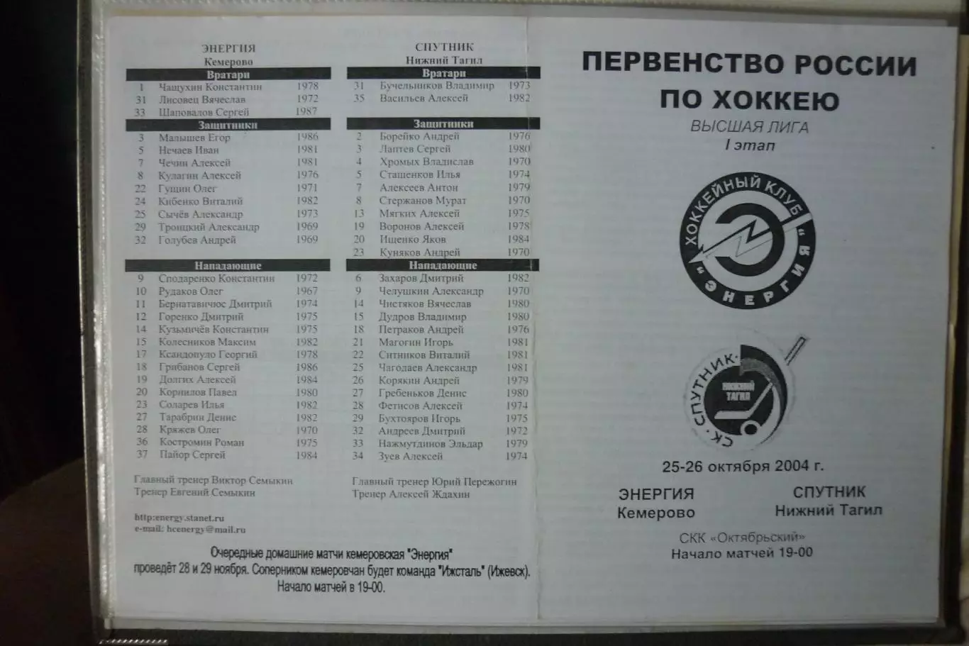 Энергия(Кемерово) - Спутник(Нижний Тагил) - 2004/05 - официальная программа