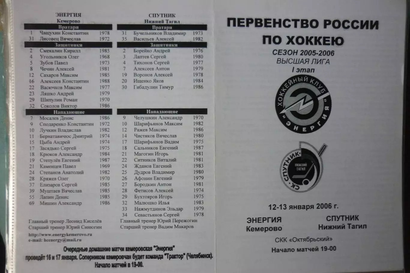 Энергия(Кемерово) - Спутник(Нижний Тагил) - 2005/06 - официальная программа
