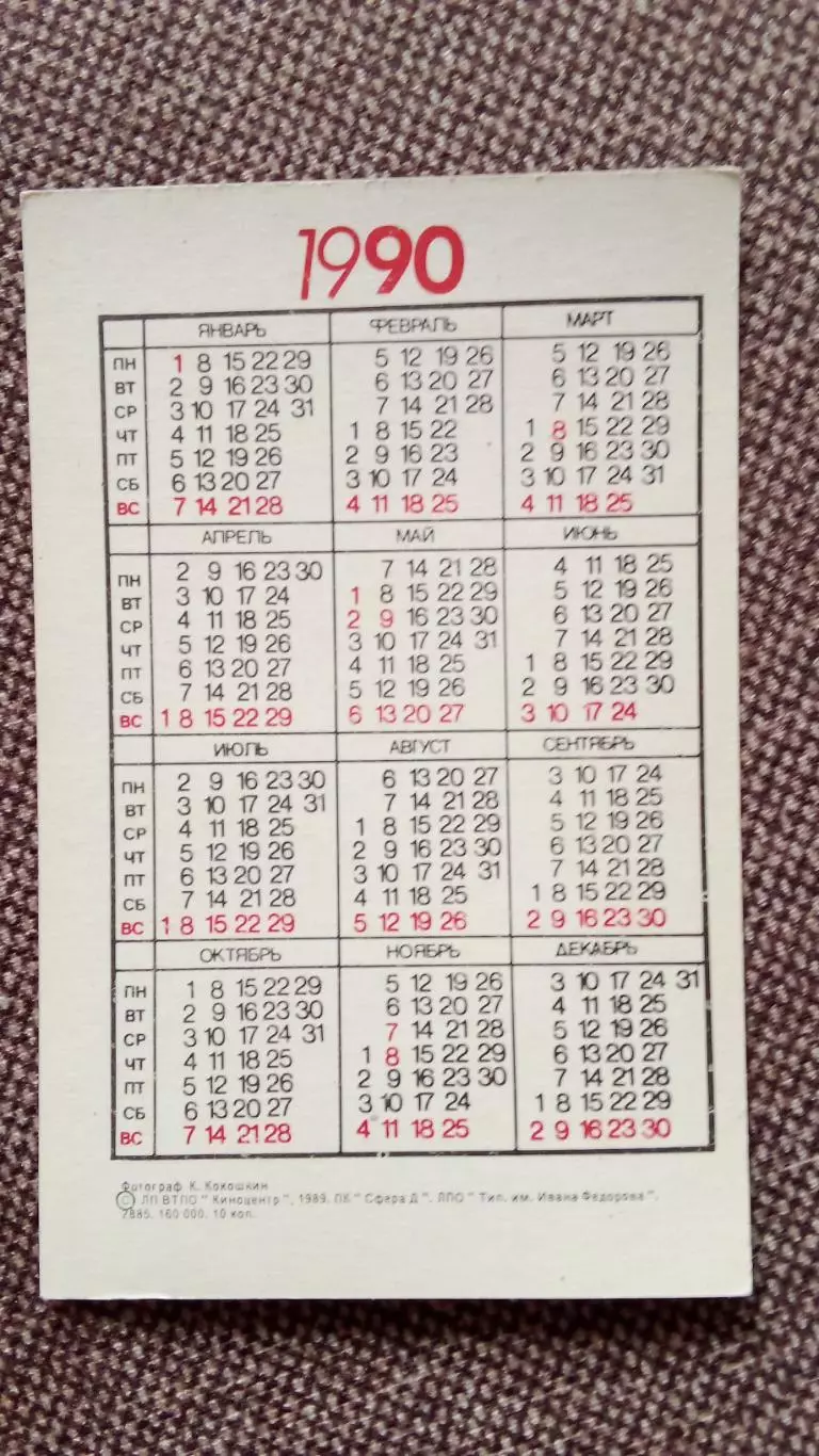 Карманный календарик : Ольга Кабо 1990 г. Актриса Артистка СССР