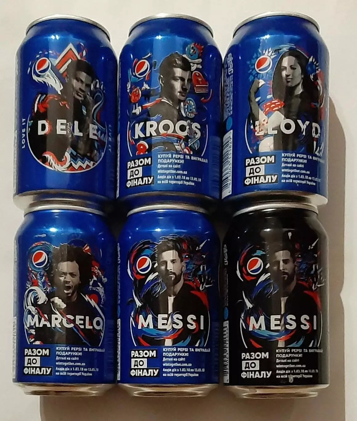 Баночки Pepsi Деле Аллі,Кроос,Ллойд,Марсело,Мессі(2шт) 6 шт. Ем.- 0,33 л.Баночки Pepsi Деле Аллі,Кроос,Ллойд,Марсело,Мессі(2шт) 6 шт. Ем.- 0,33 л. 1Баночки Pepsi Деле Аллі,Кроос,Ллойд,Марсело,Мессі(2шт) 6 шт. Ем.- 0,33 л. 2Баночки Pepsi Деле Аллі,Кроос,Ллойд,Марсело,Мессі(2шт) 6 шт. Ем.- 0,33 л. 3