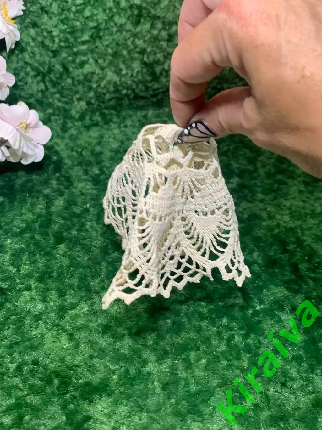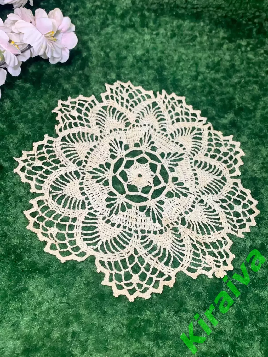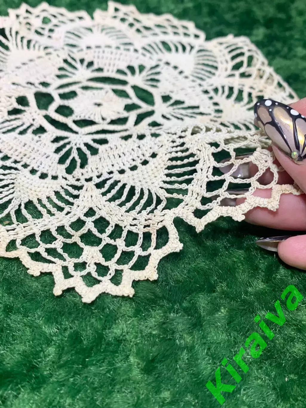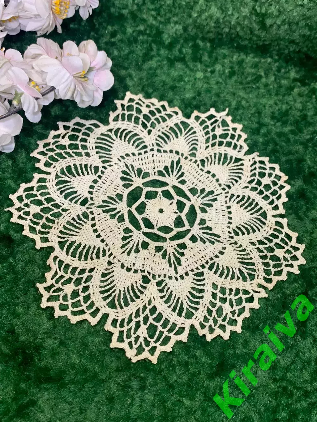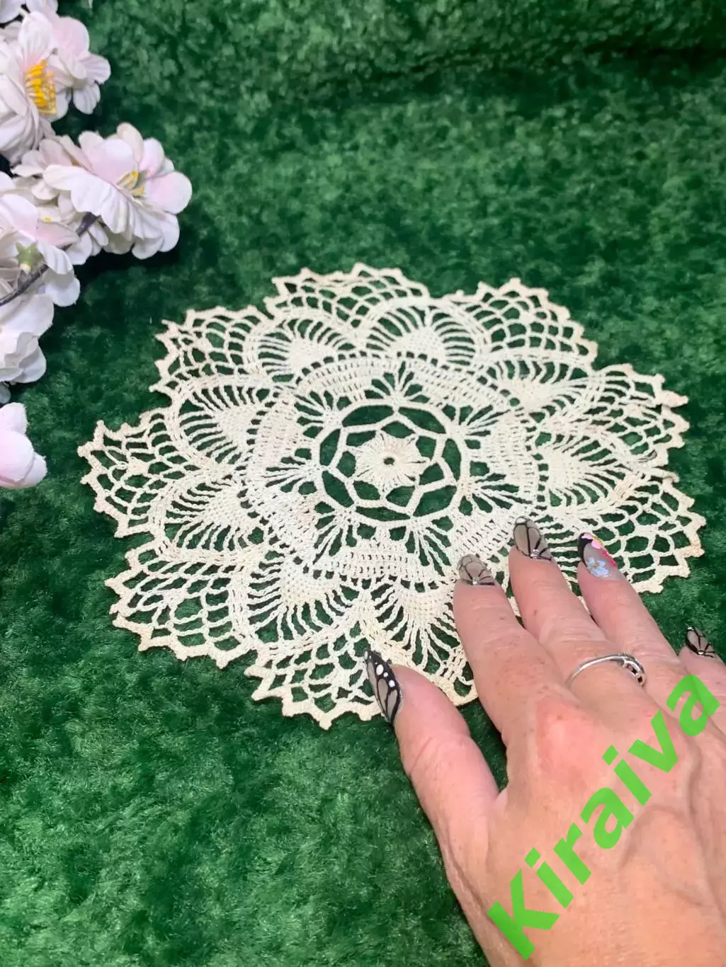 Салфетка отличается тонкой, кропотливой работой, выполненной с большим вниманием к деталям — ажурный узор делает её настоящим украшением любого стола, комода или подставки под цветок или свечу.